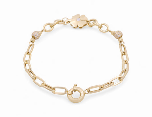 14K Yellow Gold Women's Fashion Clover Bracelet with CZ / Size: 7.5" / Weight: 5.4 GR / P78B-11