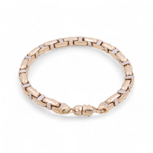 14K Yellow and White Gold Fashion Italian Link Men's Bracelet / CZ / Size: 8.5” / Weight: 25 GR / 374.104-8.5