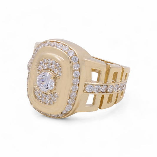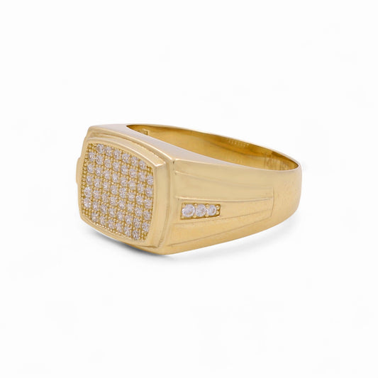 14K Yellow Gold Fashion Square Men's Ring with White CZ / Size 10 / Weight: 8.4 GR / COMR4FS-77