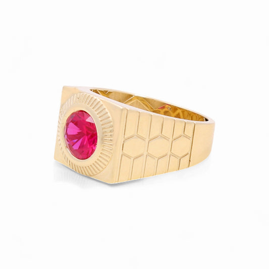 14K Yellow Gold Fashion Round Men's Ring with Red Cz / Size 11 / Weight: 6.2 GR / BOMR4FS-39