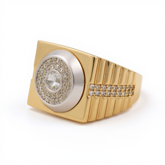 14K Yellow and White Gold Fashion Men’s Ring with White Stones / Size 11 / Weight: 9 GR / DOMRTT4FS