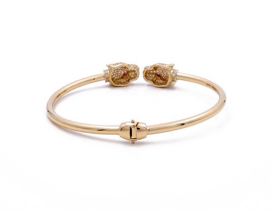 14K Yellow Gold SemiSolid Bangle Bracelet with Panther and Cz / Weight: 9.4 GR
