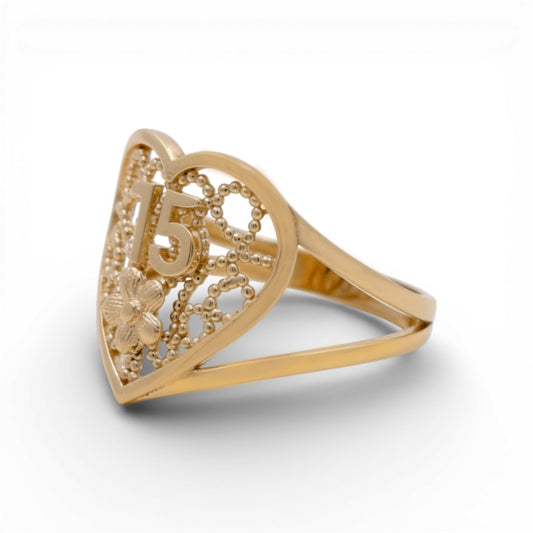10K Yellow Gold Quiceanera Women's Ring with Heart / Size: 8.5 / Weight: 2.3 GR / DQWR0HR-9