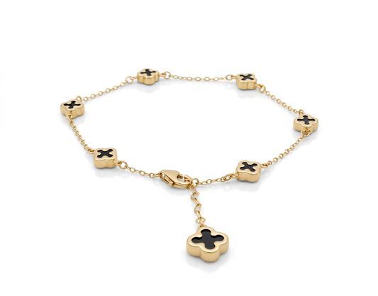 14K Yellow Gold Black Clover Women Bracelet / Size: 7” / Weight: 3.9 GR