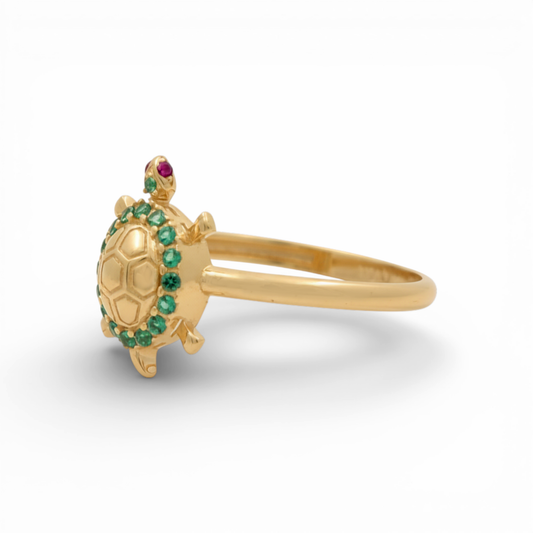 10K Yellow Gold Turtle Women's Ring with Cz / Size: 7.5 / Weight: 1.2 GR / DQWR0TG