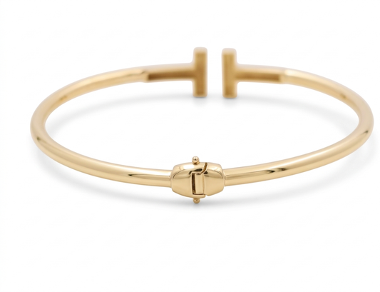 14K Yellow Gold SemiSolid Fashion Bangle Bracelet / Weight: 7.2GR