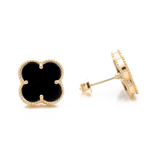 10K Yellow Gold Black Clover Stud Earrings / Size: 10MM / Weight: 1.7 GR