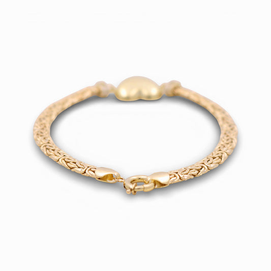 10K Yellow Gold Byzantine Link Women's Bracelet with Heart / Stone: Cz / Size: 7.5" / Weight: 5.8 GR