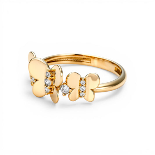 10K Yellow Gold Three Butterflies Women's Ring with Cz / Size: 7.5 / Weight: 2.2 GR / DQWR0BT-1
