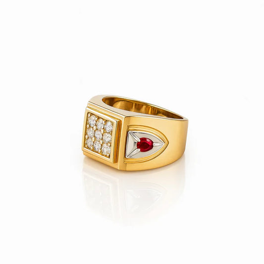 14K Yellow Gold Fashion Round Men's Ring with Red Cz / Size 11 / Weight: 6.2 GR / BOMR4FS-39