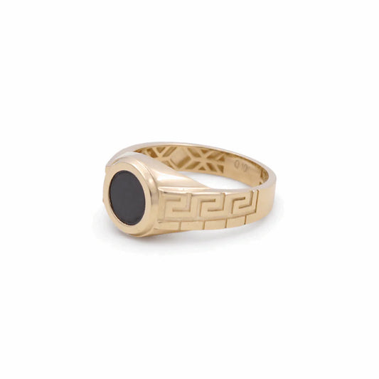 10K Yellow Gold RD Men's Ring With Onyx and Greek / Size: 11.5 / Weight: 4.4 GR / BQMR0FS