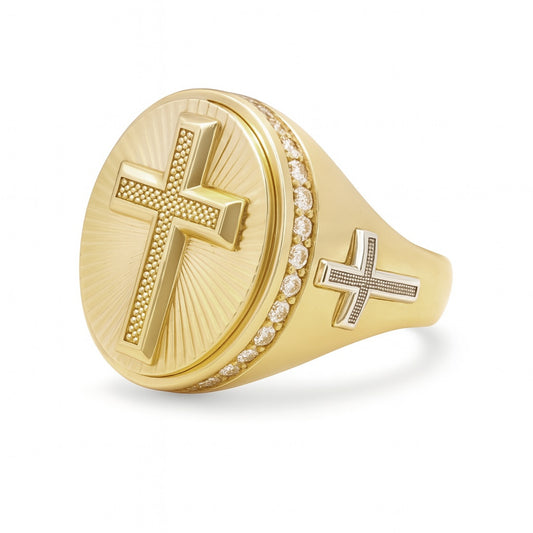10K Yellow and White Gold Oval Cross Men's Ring with Cz / Size: 10.5 / Weight: 7.5 GR / DQMRTT0CS