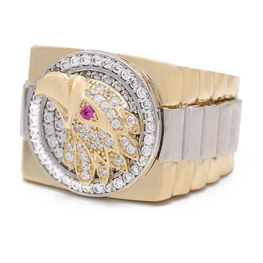 COMR4SQTTEGCZ 14k C Cz Size 9.5sz Weight 17.7gr Two Tone Cuadrado Eagle Mens Ring with Cz
