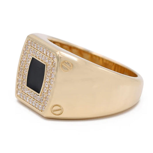 COMR4SQBECZ 14k C Cz Size 10.5sz Weight 8.9gr Cuadrado Mens Ring with black enamel and Cz