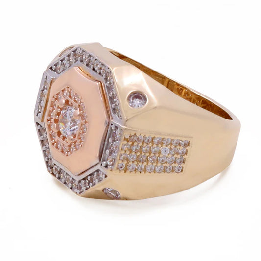 Gold Ring Men COMR3T4FS-1 14k C Cz Size 9.5sz Weight 7.7gr Three Tone Fashion