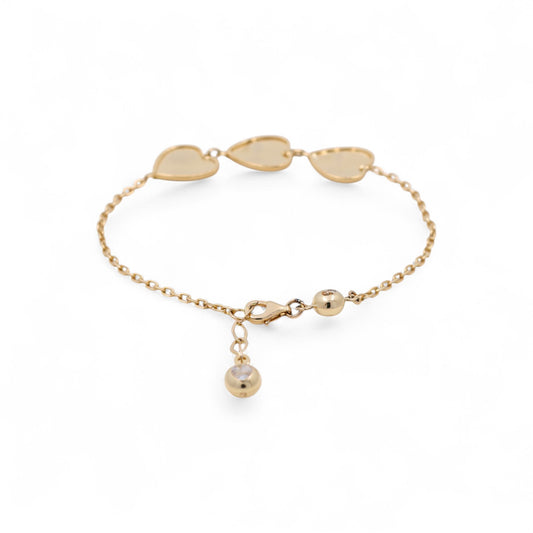14K Yellow Gold Women's Bracelet with Three Hearts / Size: 7.5" / Weight: 5.9 GR / COWB4HR-5