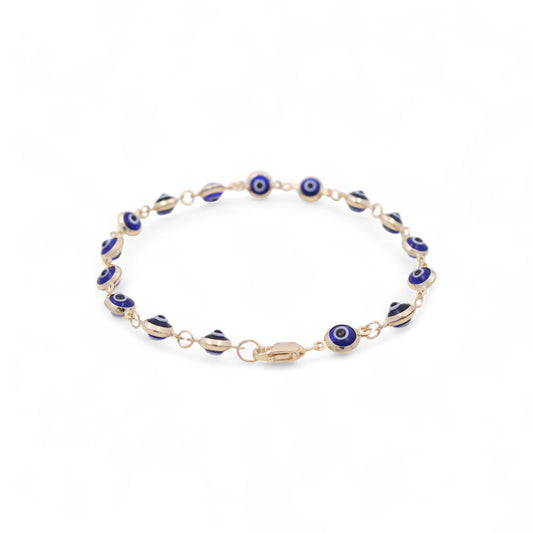 14K Yellow Gold Women's Evil Blue Eyes Bracelet / Size: 7.5" / Weight: 4.5 GR / BOWB4EY-5