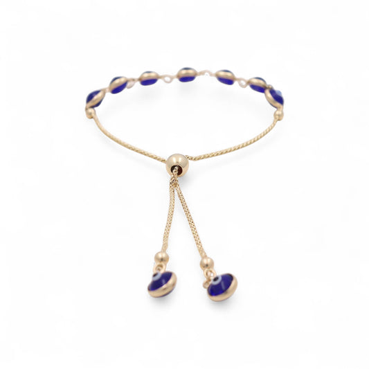 14K Yellow Gold Women's Adjustable Evil Blue Eyes Bracelet / Weight: 5.1 GR / BOWB4EY-3