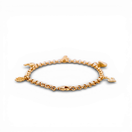 10k Yellow Gold Rolo Women's Bracelet with Hanging Charms / Size: 7.5" / Weight: 6.1 GR