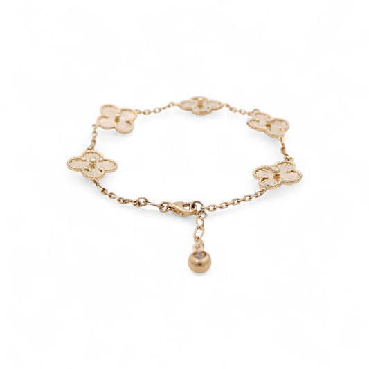 14K Yellow Gold Five Clover Women's Bracelet / Size 7" / Weight 6.9 GR / COWB4CLV-9