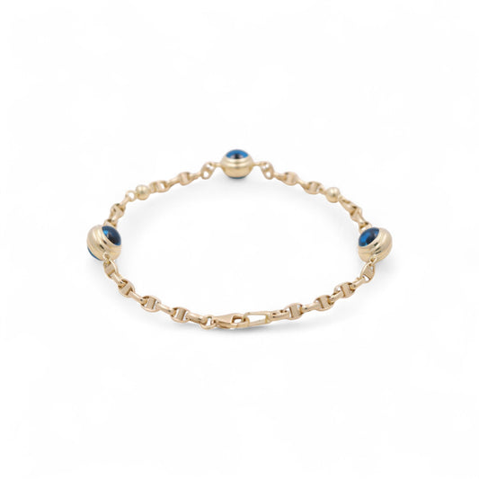 14K Yellow Gold Women's Evil Blue Eyes Mariner Bracelet / Size: 8" / Weight: 5.3 GR / BOWB4EY-6