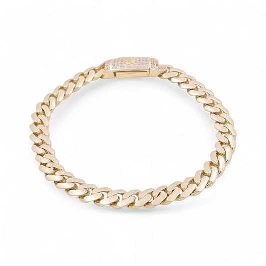 10K Yellow Gold Semisolid Fashion Cuban Link Bracelet with CZ / Size: 6mm 7.5" / Weight: 10 GR / P10B-363