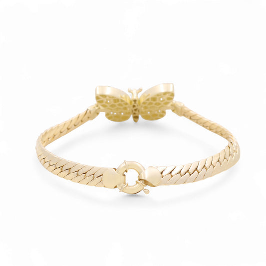 10K Yellow Gold Women's Cuban Link Bracelet W/Butterfly and Cz / Size: 7.5" / Weight: 11.9 GR / P10S-169