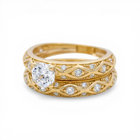 10K Yellow Gold Women’s Greek Bridal Set / Stone: Cz / Size: 8 / Weight: 5.5 GR