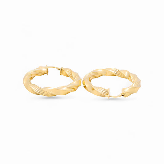14K Yellow Gold Twist Hoops Earrings / Size: 3.5mmx15mm / Weight: 2.4 GR / 240-00802