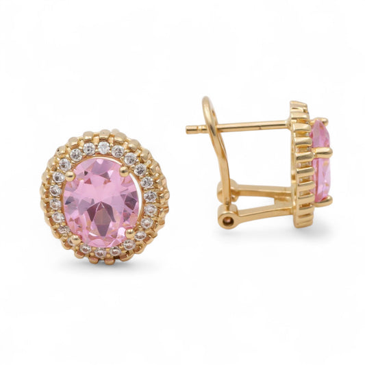 10K Yellow Gold Fashion Omega Stud Earrings with Pink and White Stones / Weight: 4.6 GR / CQES0FS