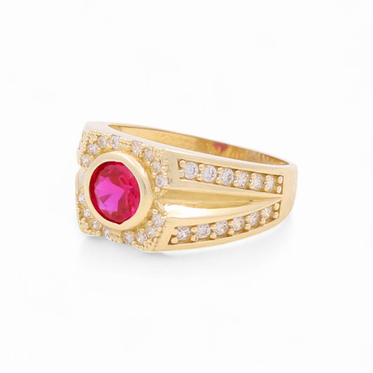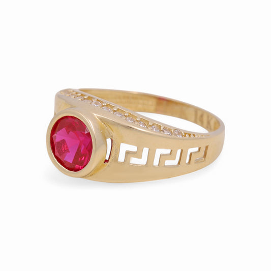 14k Yellow Gold Round Kids Ring with Greek and Red Cz / Size 4.5 / Weight 2.5 GR / COKR4FS