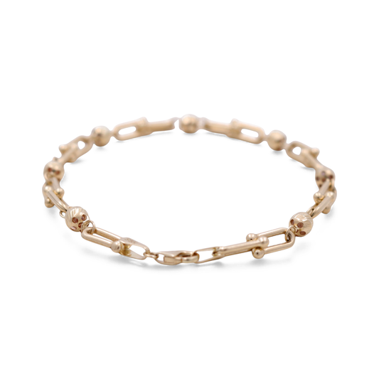 14k Yellow Gold Fashion TT Link Women's Bracelet with Balls / Size: 7.5" / Weight: 5.3 GR / CCFWB4TT