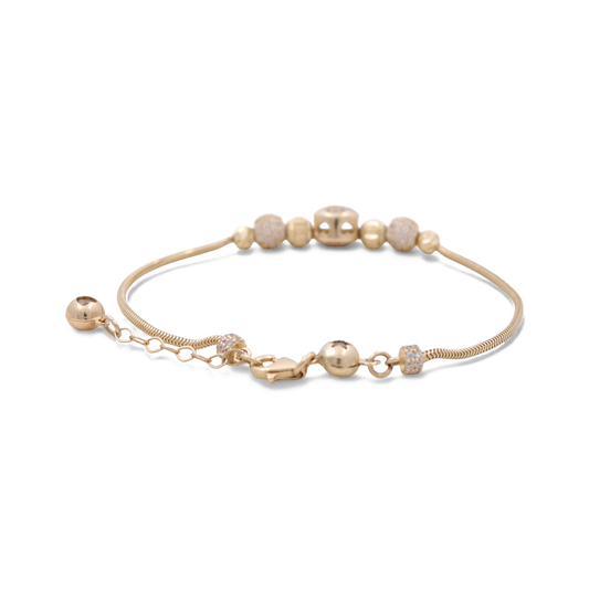 14k Yellow Gold Fashion Paper Clip Women's Bracelet with Balls and Pearl / Size: 7 " / Weight:1.7 GR / CCFWB4PC-1