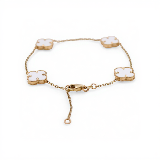 10K Yellow Gold Four Mother of Pearl Clovers Women's Bracelet / Size: 7.5” / Weight: 3.7 GR / BQWB0CLV-2