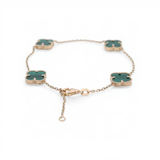 10K Yellow Gold Four Green Clovers Women's Bracelet / Size: 7.5” / Weight: 4.2 GR / BQWB0CLV-2