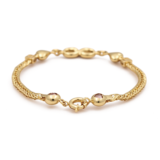 14K Yellow Gold Fashion Women's Bracelet with Red Eyes / Stone: Cz / Size: 7.5" / Weight: 2.6 GR / COWB4RLFS