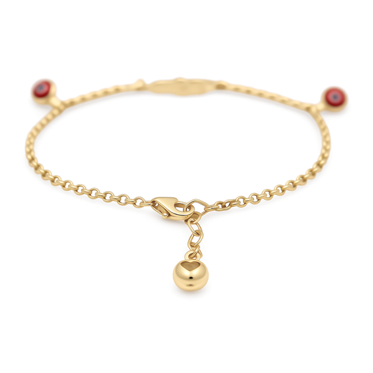 14K Yellow Gold Hand of Fatima Women's Bracelet with Red Eyes / Stone: Cz / Size: 7.5" / Weight: 2.3 GR / COWB4RLMF