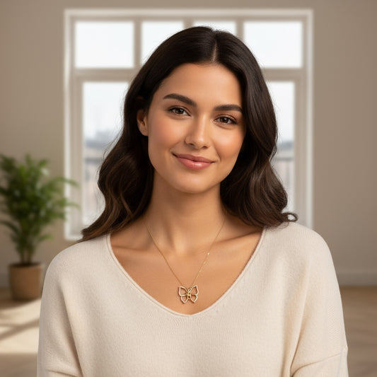 14K Yellow Gold Fashion Butterfly Necklace with Cz / Size: 18” / Weight: 4 GR / CONK4BF