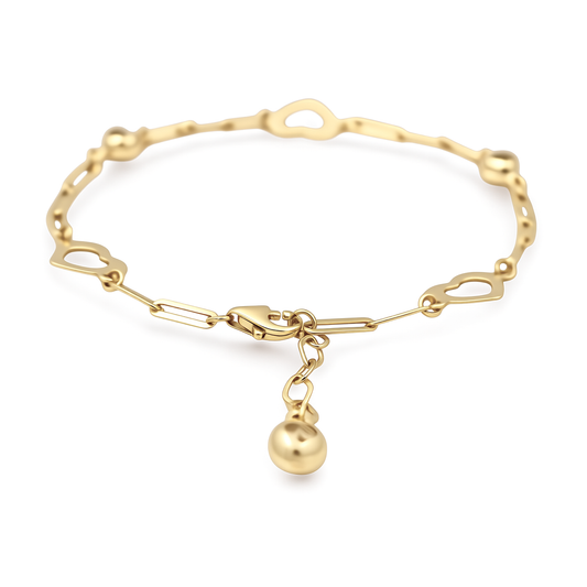 14K Yellow Gold Three Hearts Women's Bracelet with Diamond Cut Design / Size: 7.5" / Weight: 5.8 GR / COWB4HR-6