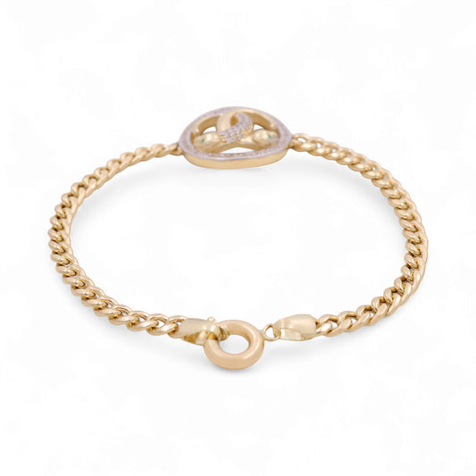 14K Yellow Gold Cuban Link Women's CC Bracelet with Panthers and Cz / Size: 7.5" / Weight: 8.5 GR / DOWB4CCPT