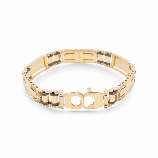 14K Yellow Gold Semisolid Italian Men's Bracelet with Onyx and Cz / Size: 8" / Weight: 20.4 GR / 120-03098