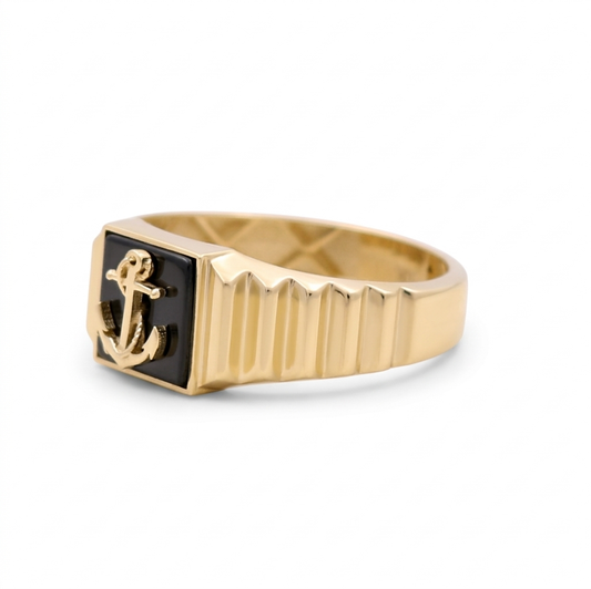 10K Yellow Gold Virgen de la Caridad With Onyx Men's Ring / Size:12 / Weight: 6.3 GR