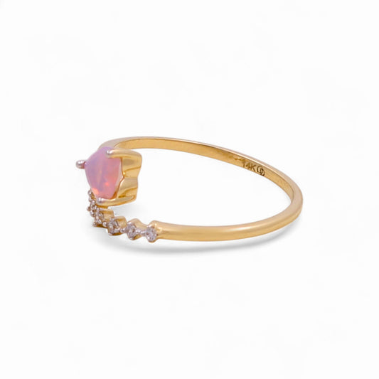 14K Yellow Gold Heart Women's Ring with Pink Cz / Size: 7 / Weight: 1.3 GR / KEEWR4HR