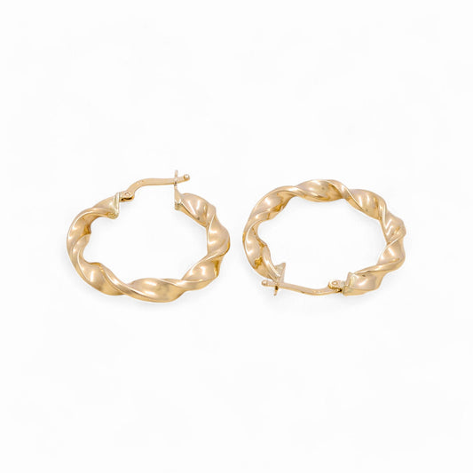 14K Yellow Gold Twist Hoops Earrings / Size: 2.5mm X 15.5mm / Weight:1.5 GR / KOEH4TR2.5x15.5