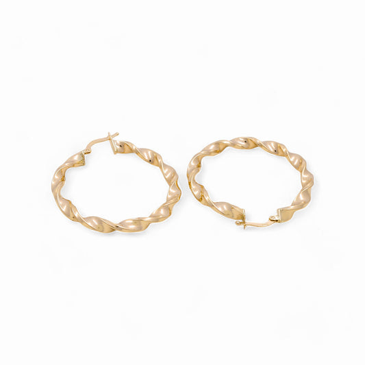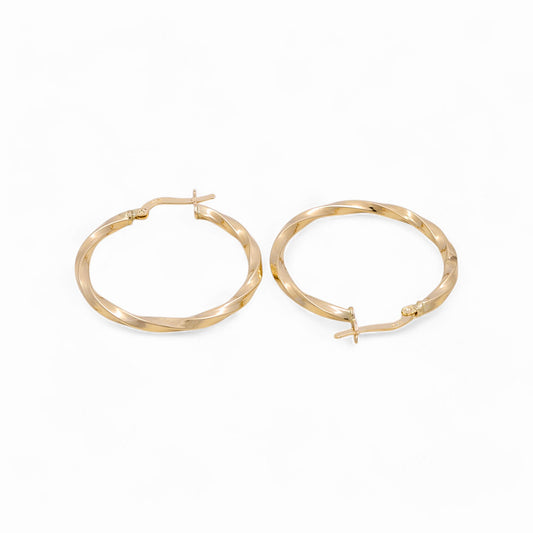 14K Yellow Gold Twist Hoops Earrings / Size: 2.5mm X 26.5mm / Weight: 2.2 GR / KOEH4TR2.5x26.5