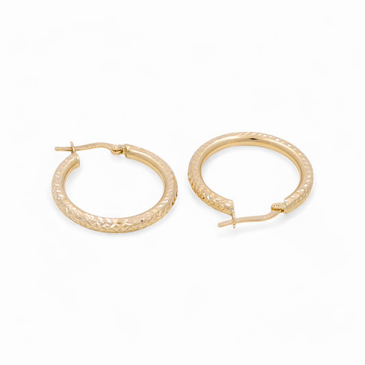 14K Yellow Gold Diamond Cut Hoops Earrings / Size: 3mm X 21mm / Weight: 2.9 GR / KOEH4DC3x21