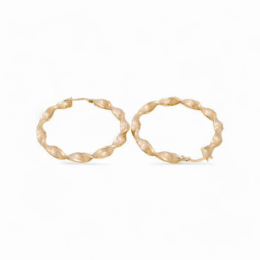 10K Yellow Gold Twist Hoops Earrings / Size: 2.5mm X 21mm / Weight: 1.7 GR / KOEH0TR 2.5x21