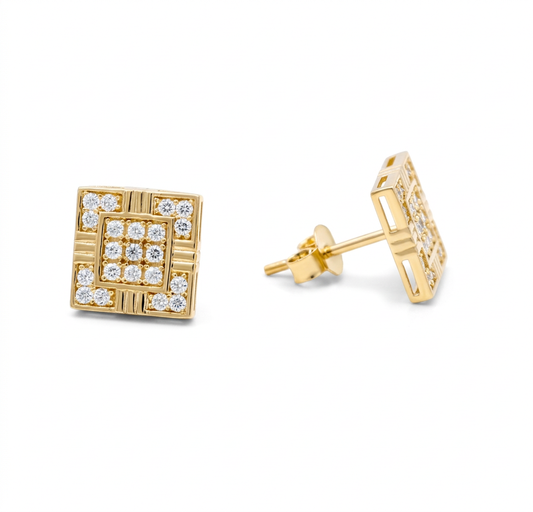 10K Yellow Gold SQ Fashion Stud Earrings with Cz / Weight: 2 GR / DQES0FS-3