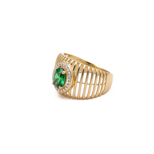 14K Yellow Gold Fashion Women's Ring with Green Cz / Size: 7 / Weight 2.9 GR / BOWR4FS-47