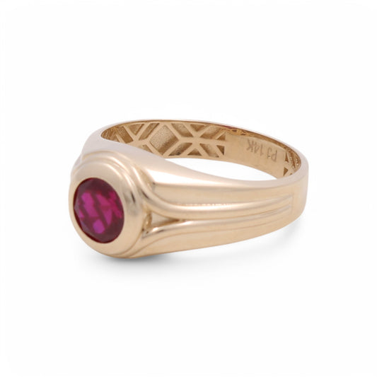 14K Yellow Gold RD Fashion Men's Ring With Red Cz / Size: 10 / Weight: 4 GR / CPMR4FS-4